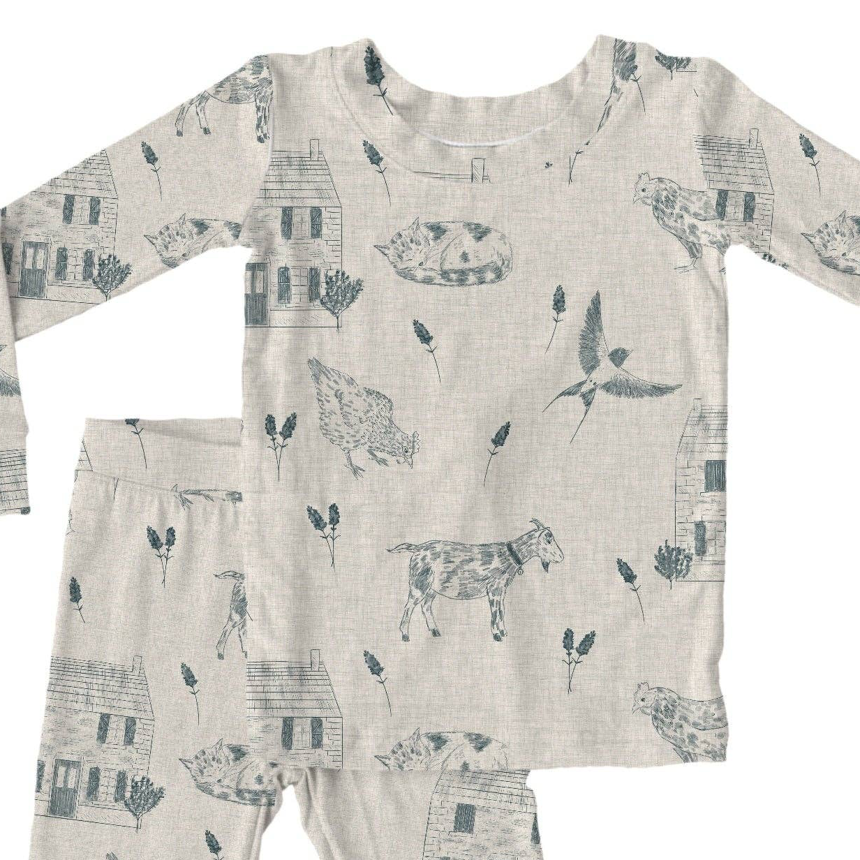 Step into a storybook scene with the Country Cottage Long Sleeve Set, where country charm meets everyday whimsy. Delicate illustrations of countryside goats, a sleepy curled-up cat, and the warm glow of a quaint countryside cottage create a design that feels like home. Printed on our signature buttery-soft bamboo, this dreamy piece is as cozy as it looks—perfect for little ones who love comfort, warmth, and a touch of nostalgia. 95% bamboo 5% spandex.