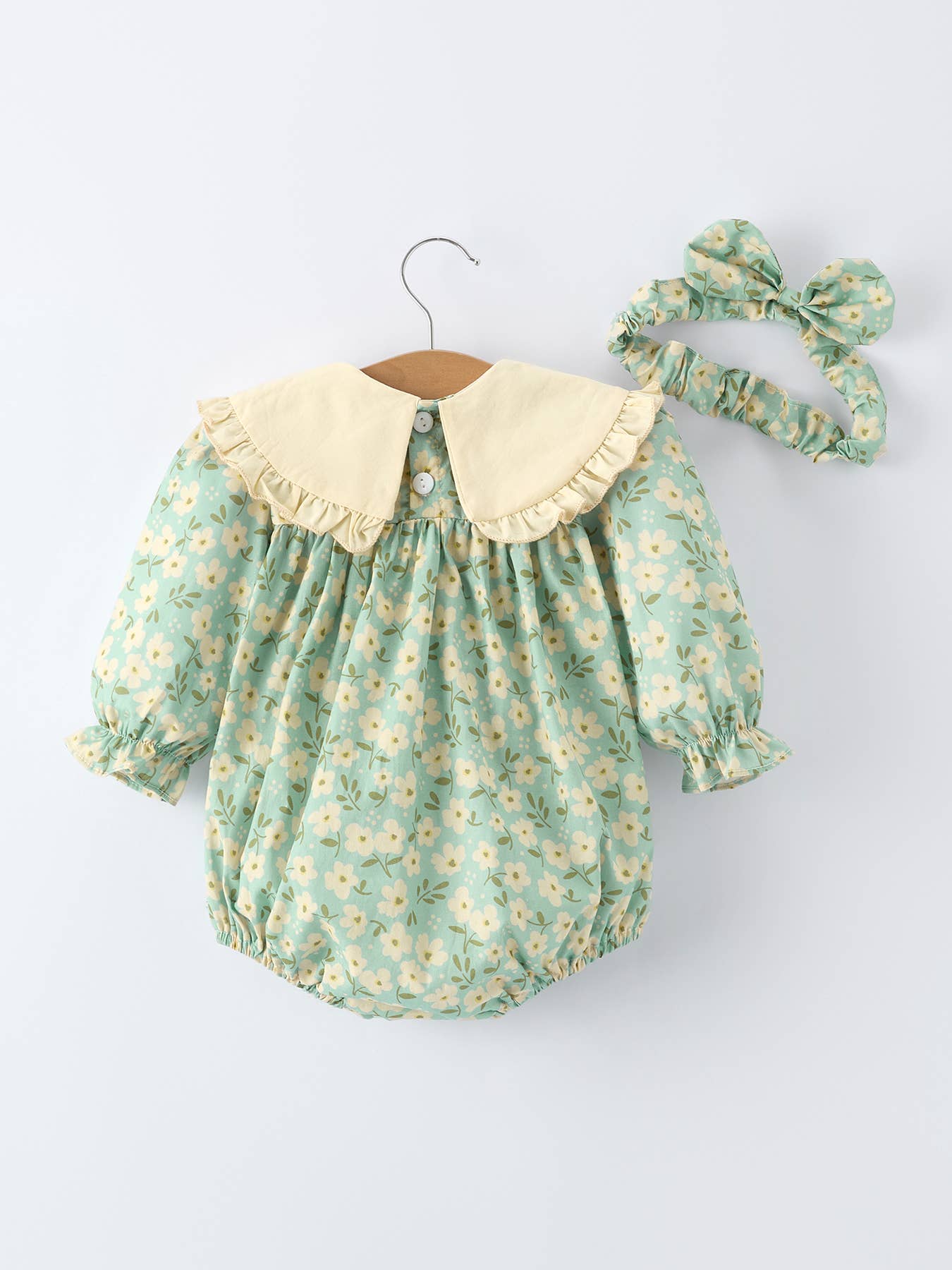 The vibrant floral pattern adds a bright touch to any occasion, while the matching headband adds an extra touch of cuteness. Whether for photoshoots, playing around, or everyday wear, this outfit allows you to easily create a sweet and adorable look. Material:100% Cotton