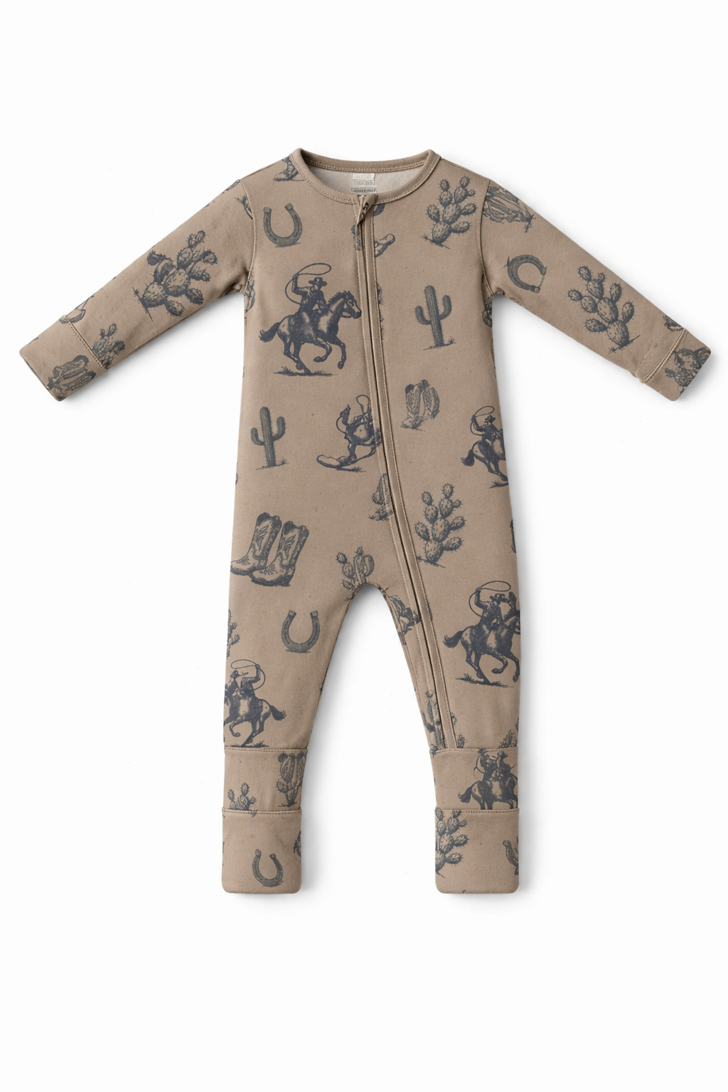 Saddle up for cozy nights in our Dusty Cowboy Bamboo Pajamas. Made from ultra-soft, breathable Bamboo fabric, these pajamas are designed to keep little ones comfortable all night long. Featuring a charming dusty-toned cowboy print, they blend classic western style with modern comfort. The lightweight, stretchy material is gentle on sensitive skin and perfect for year-round wear, while the snug-yet-comfy fit allows for easy movement—from bedtime stories to morning cuddles.
