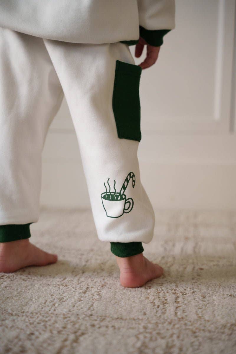 Cozy, cuddly, and ready for cookie time - your cookie loving child will love our Official Cookie Taster Sweat Set. Designed to be slightly oversized. In a very soft, warm fleece. Has a hot cocoa and gingerbread man graphic on the pants as well.