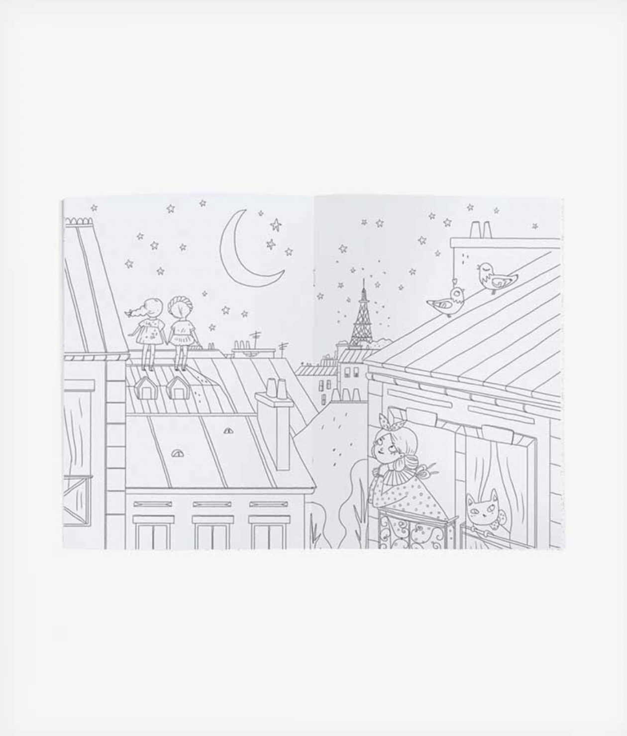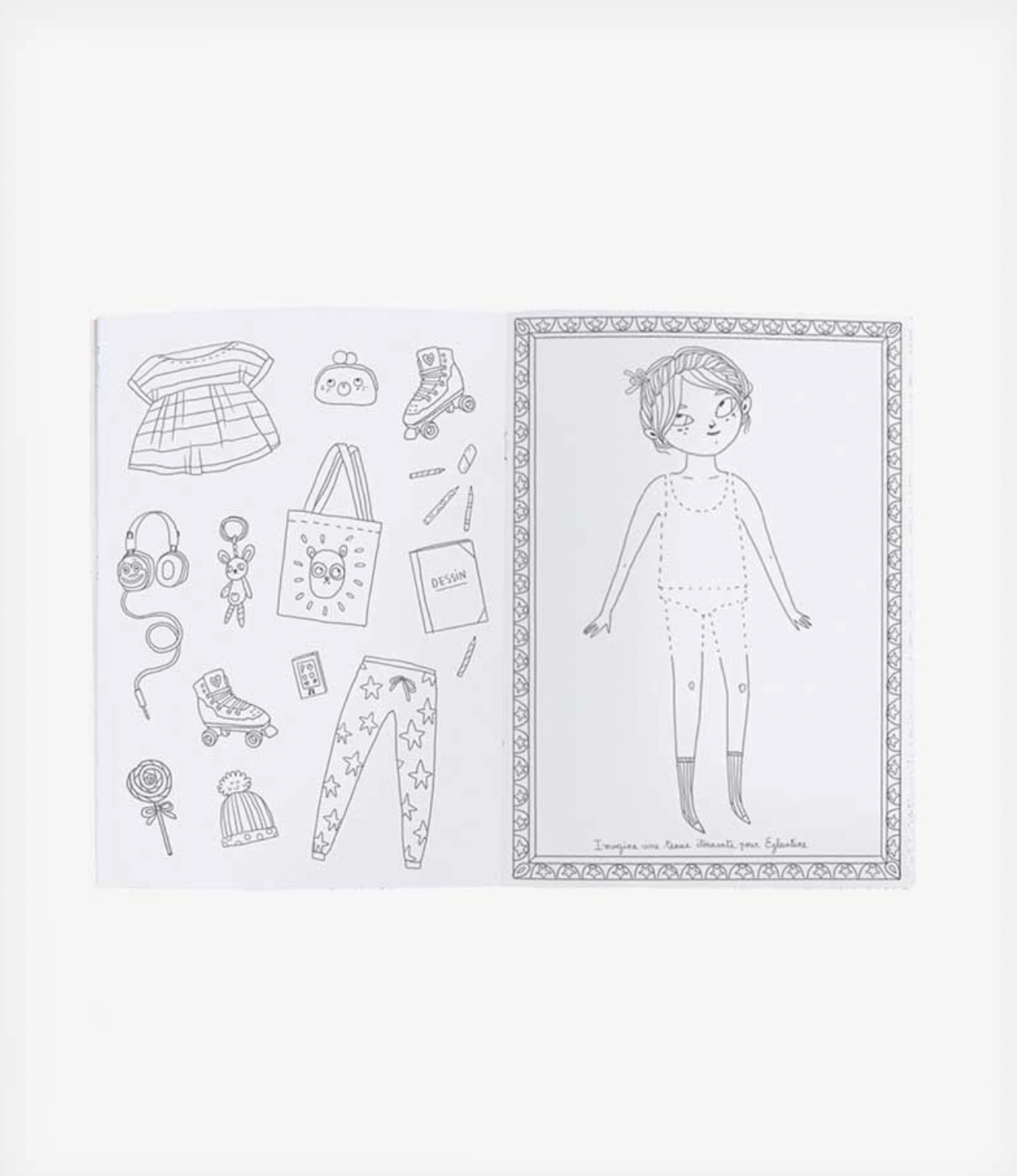From the “Parisiennes” collection, this coloring book has a delightful portrait in pastel colors of Madame Constance on the cover. It is enhanced by a pastel floral pattern and the theme delicately sketched in black by the artist.