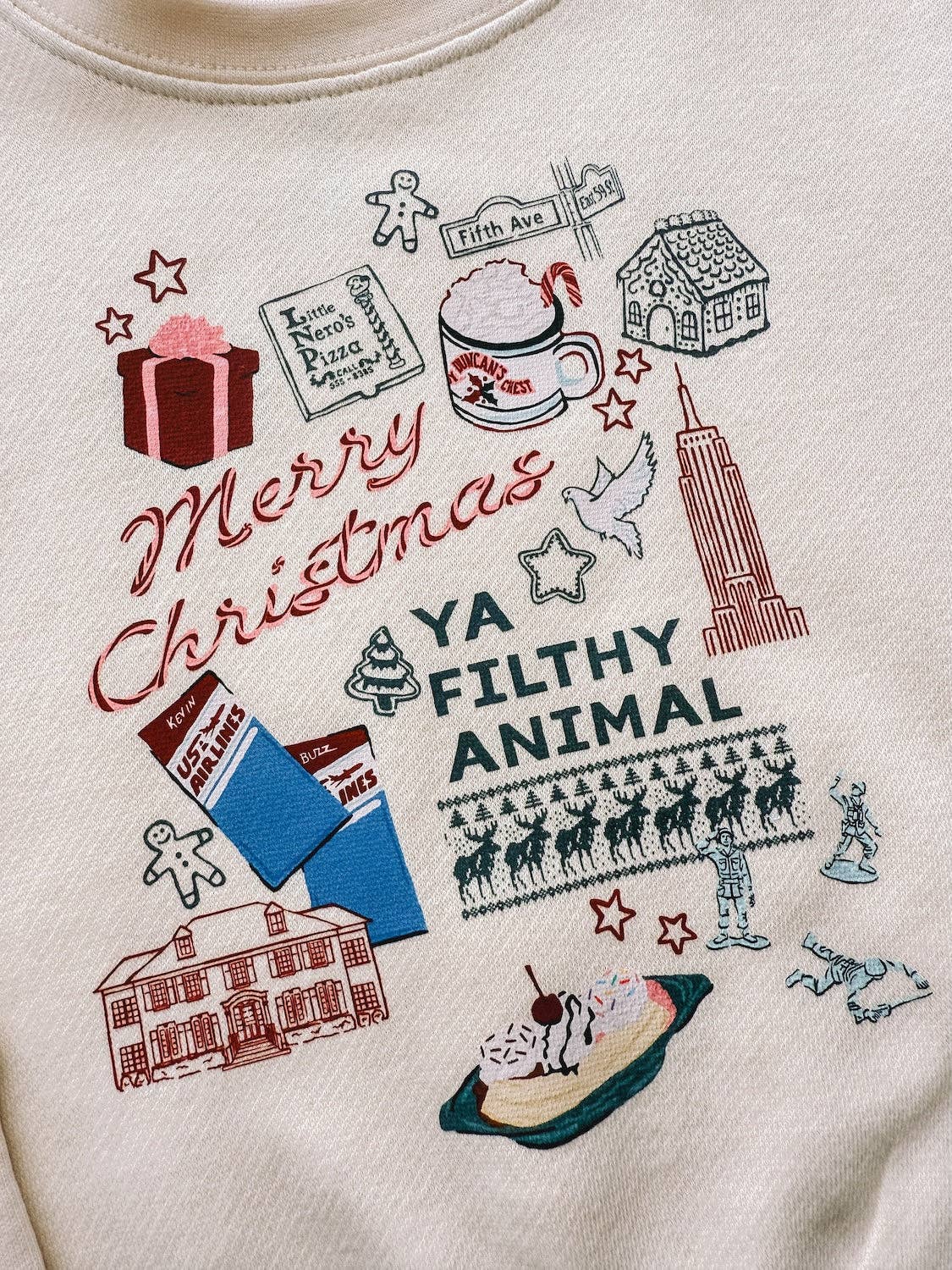 Kevin Fleece Crewneck - inspired by home alone! * available in ivory * 60/40 cotton/polyester * Care: Machine wash cold, gentle. Tumble dry low or lay flat to dry * all holiday items are final sale