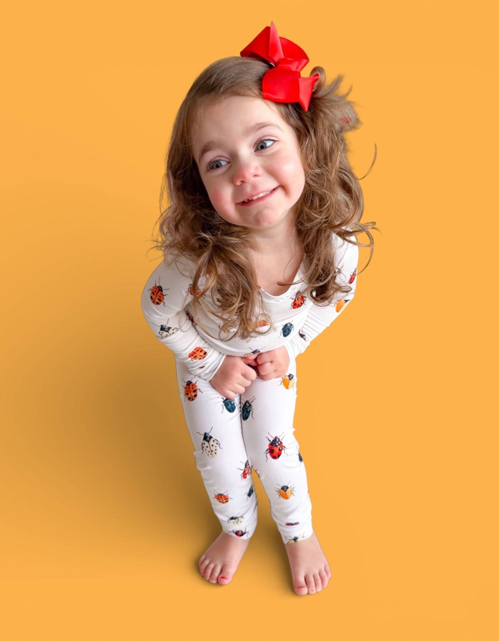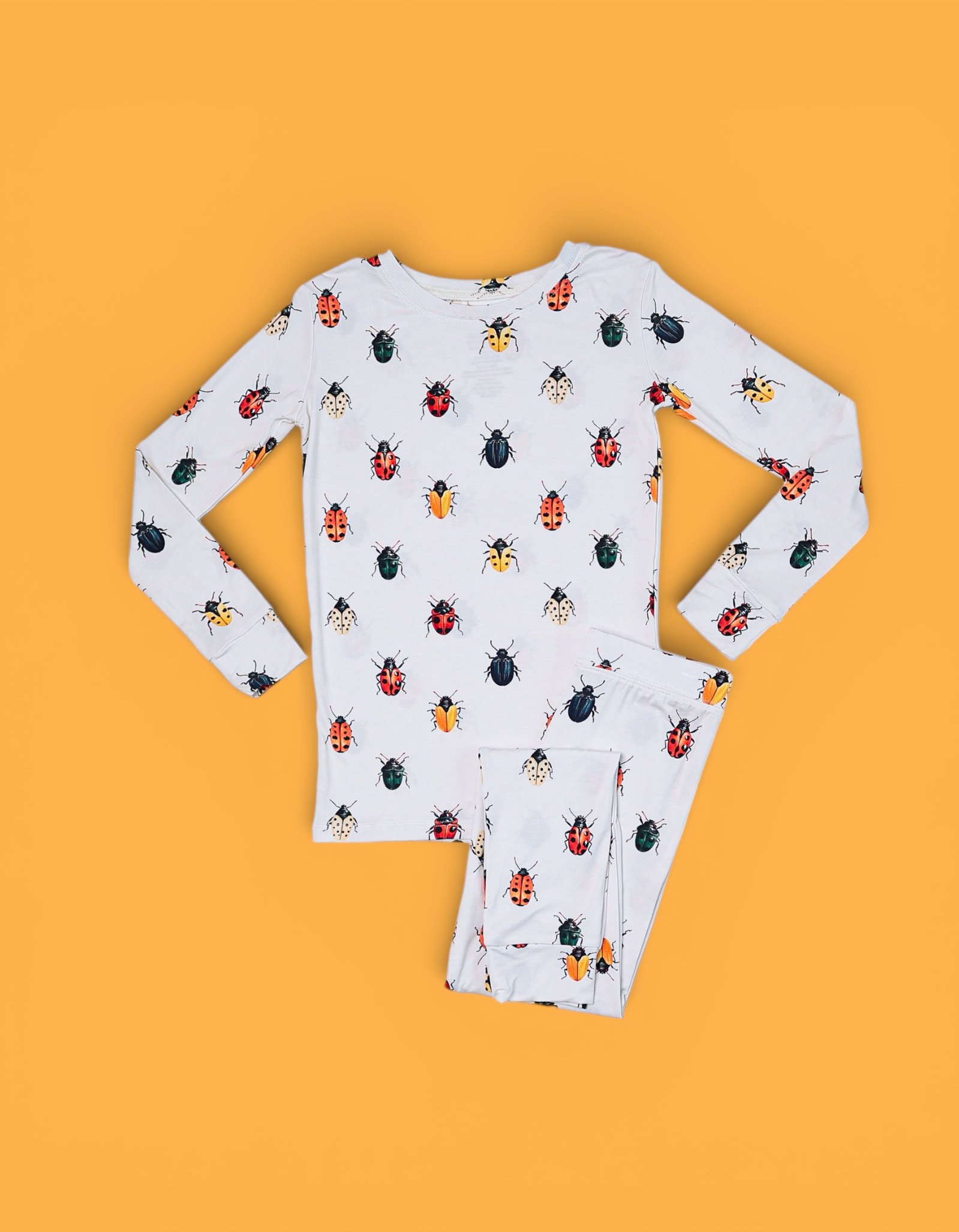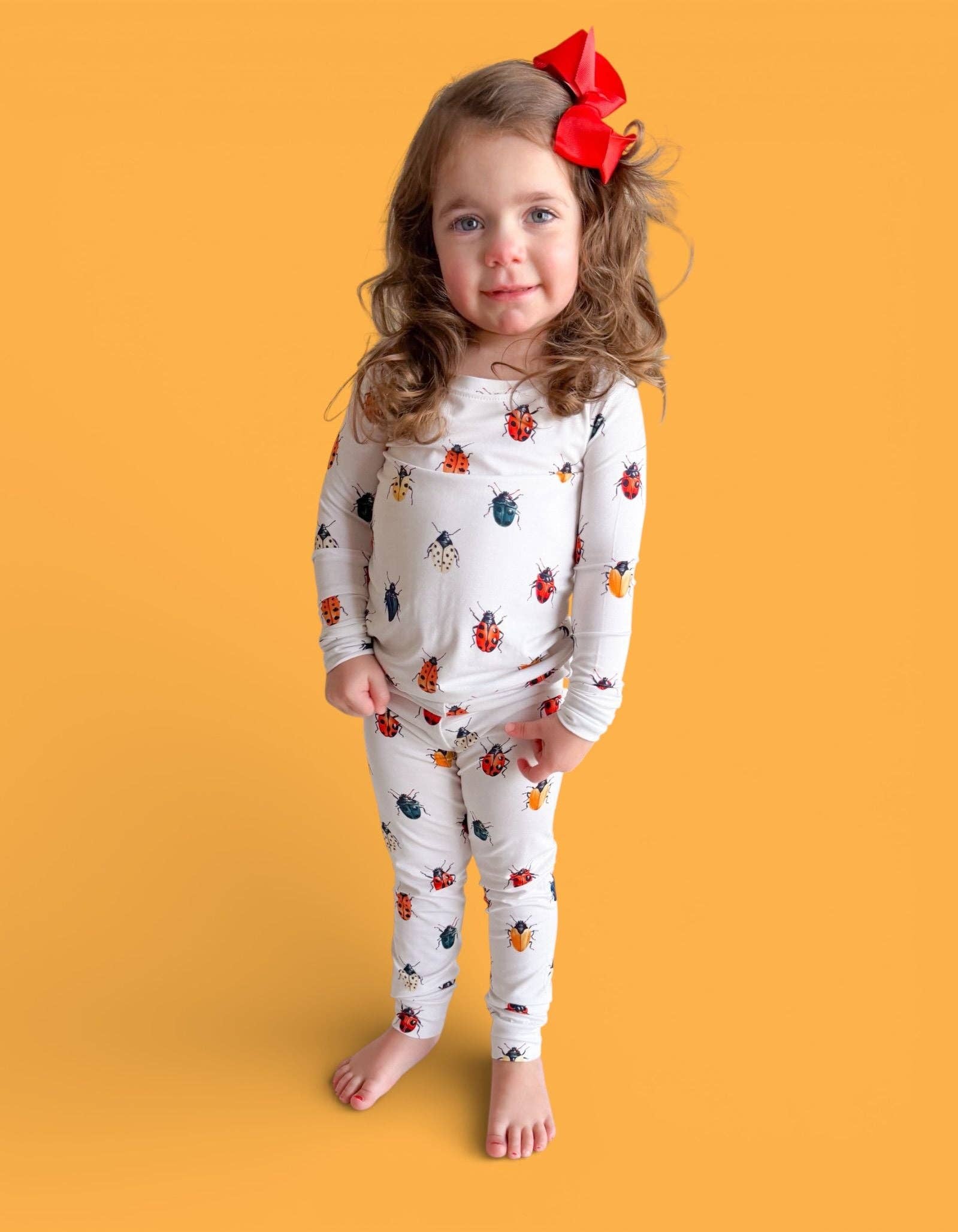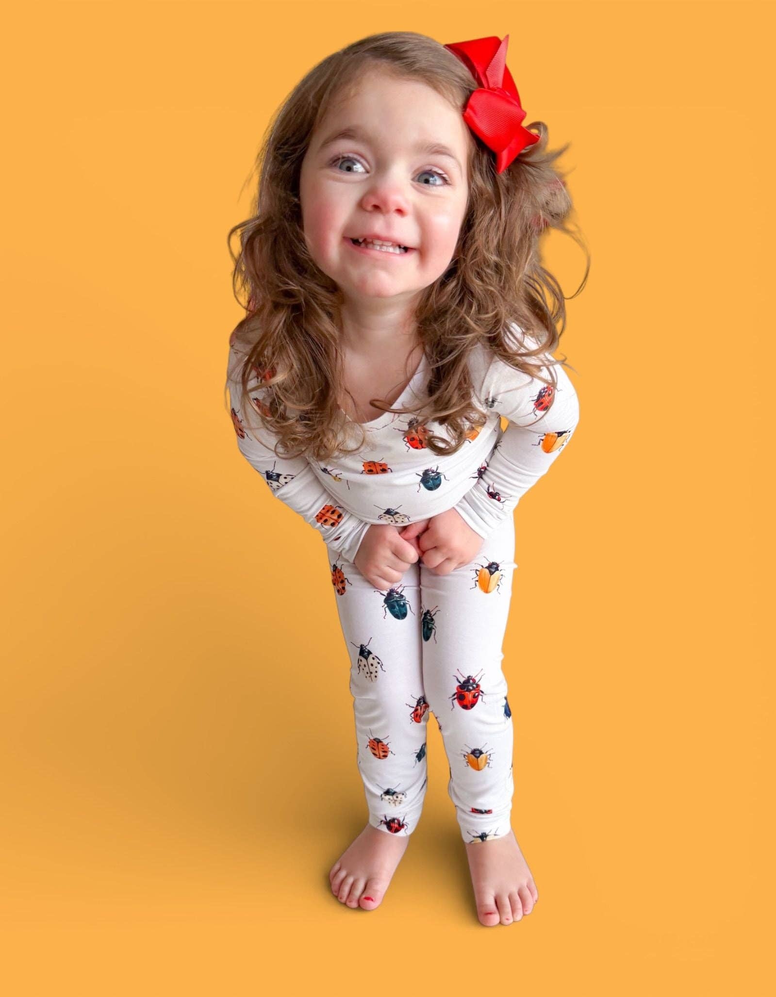 🐞 Whimsical bug print inspired by nature 👕 Two-piece set with comfy top + matching bottoms 🌿 Buttery-soft, breathable bamboo fabric 🤍 Gentle on sensitive skin ✨ Perfect for playtime, lounging & bedtime