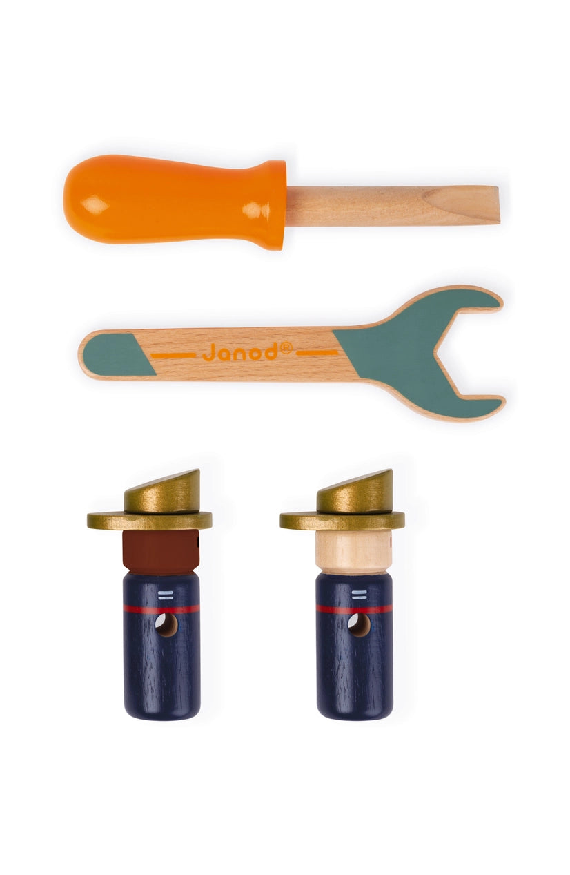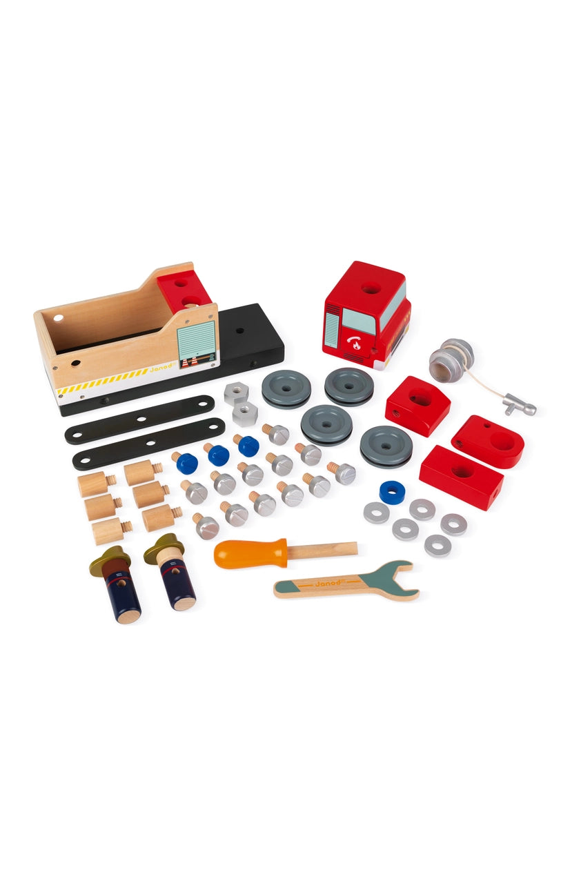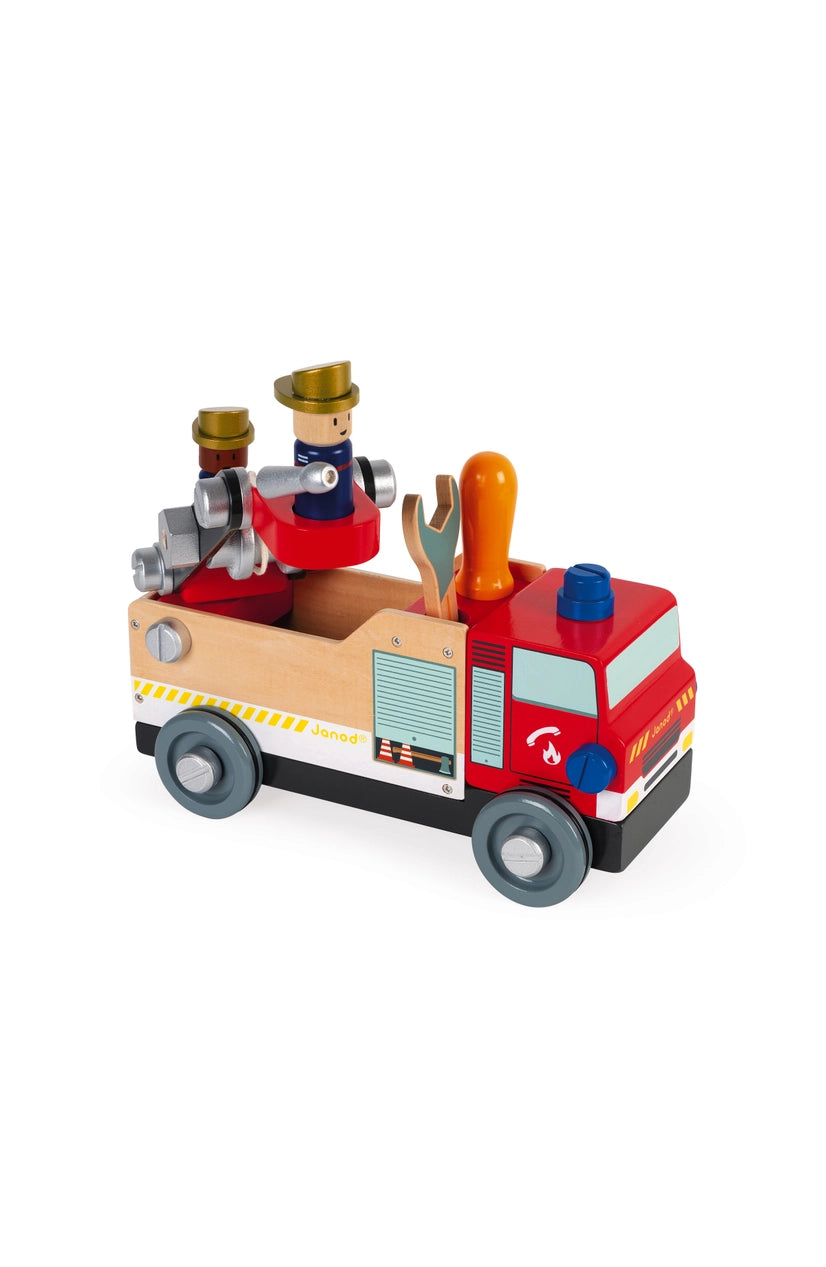 For children aged 3-8 years. Wooden toy. 2 toys in 1: a construction game to reassemble a magnificent fire engine using the many nuts, plates and screws provided.