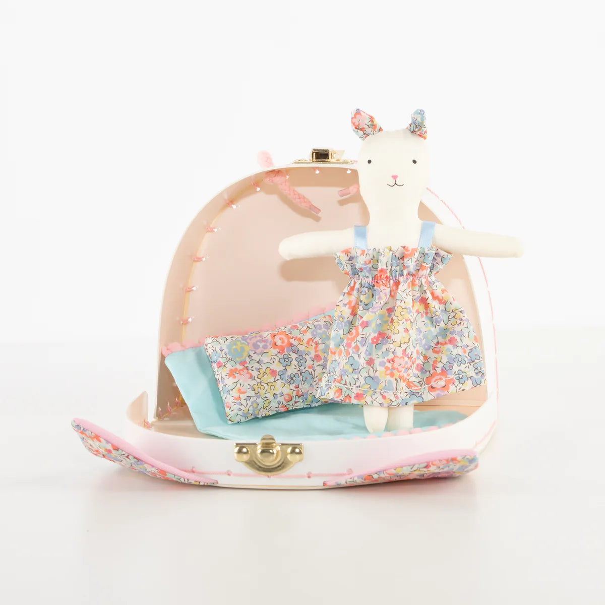 The Floral Kitty Mini Suitcase Doll features: