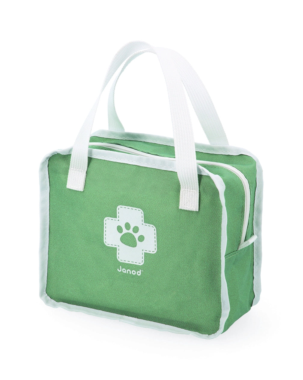15 accessories: 1 badge, 4 prescription cards, 4 x-rays (rabbit, cat, fish and a broken bone), 1 bandage, 1 felt collar and 4 wooden accessories: stethoscope, syringe, thermometer and a pot of cream.